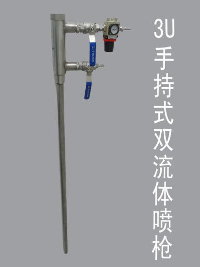 “3U手持式智能雙流體噴槍”無論壓縮空氣母管壓力如何變化均能自動保持噴出的的化學藥劑微粒直徑在30μm~50μm之間,氣液壓力及流量的調整均自動進行,現場人員無法進行人工干預。