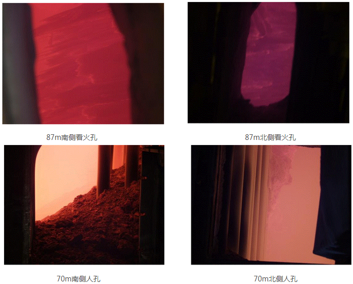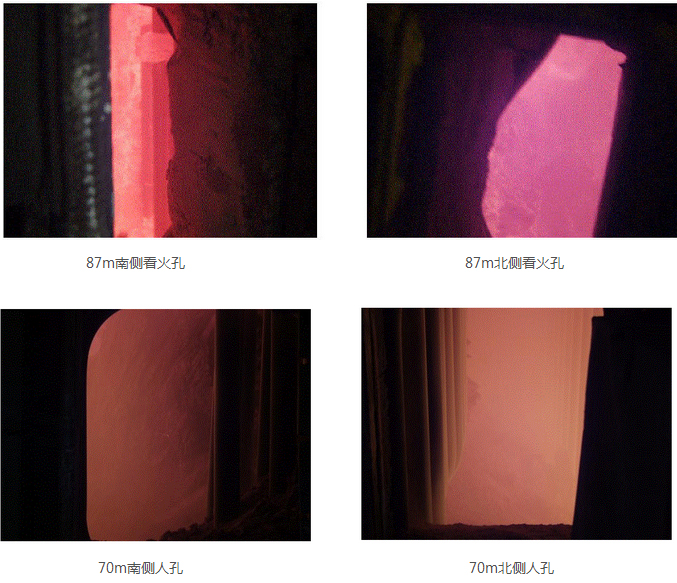 6、使用前#1爐87m看火孔結焦及70m人孔照片: