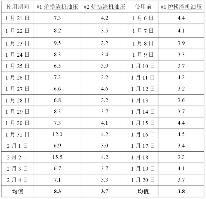 3、使用前及使用期間#1、#2爐撈渣機油壓對比如下:
