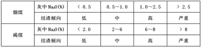 2、煤中灰分按Na2O含量確定的沾污傾向