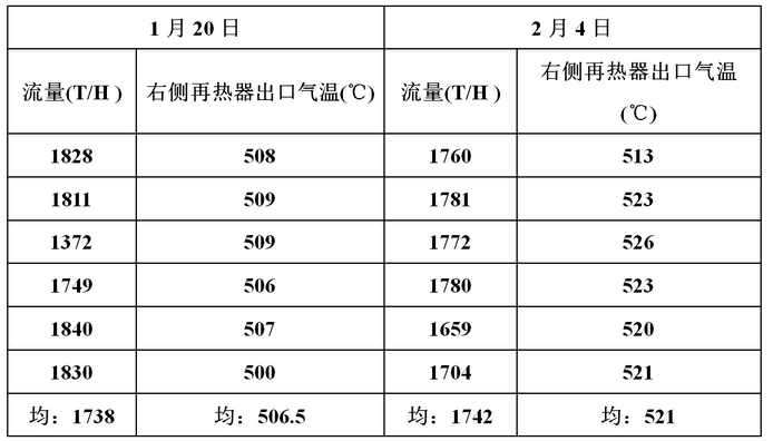 3、在入爐煤質沒有太大變化的情況下,當#1爐連續大負荷運行6小時,為抑制再熱器管壁超溫,只得通過調節#1爐再熱器出口氣溫去控制再熱器管壁溫度。通過對比試用前后#1爐右側再熱器出口氣溫發現,試用前當#1爐平均主氣流量為1738T/H時,右側再熱器出口平均氣溫為506.5℃;在使用后當#1爐平均主氣流量為1742T/H 時,右側再熱器出口平均氣溫可以提高到521℃,這充分說明再熱器掛焦大面積掉落之后,管壁超溫現象已經得到有效抑制;